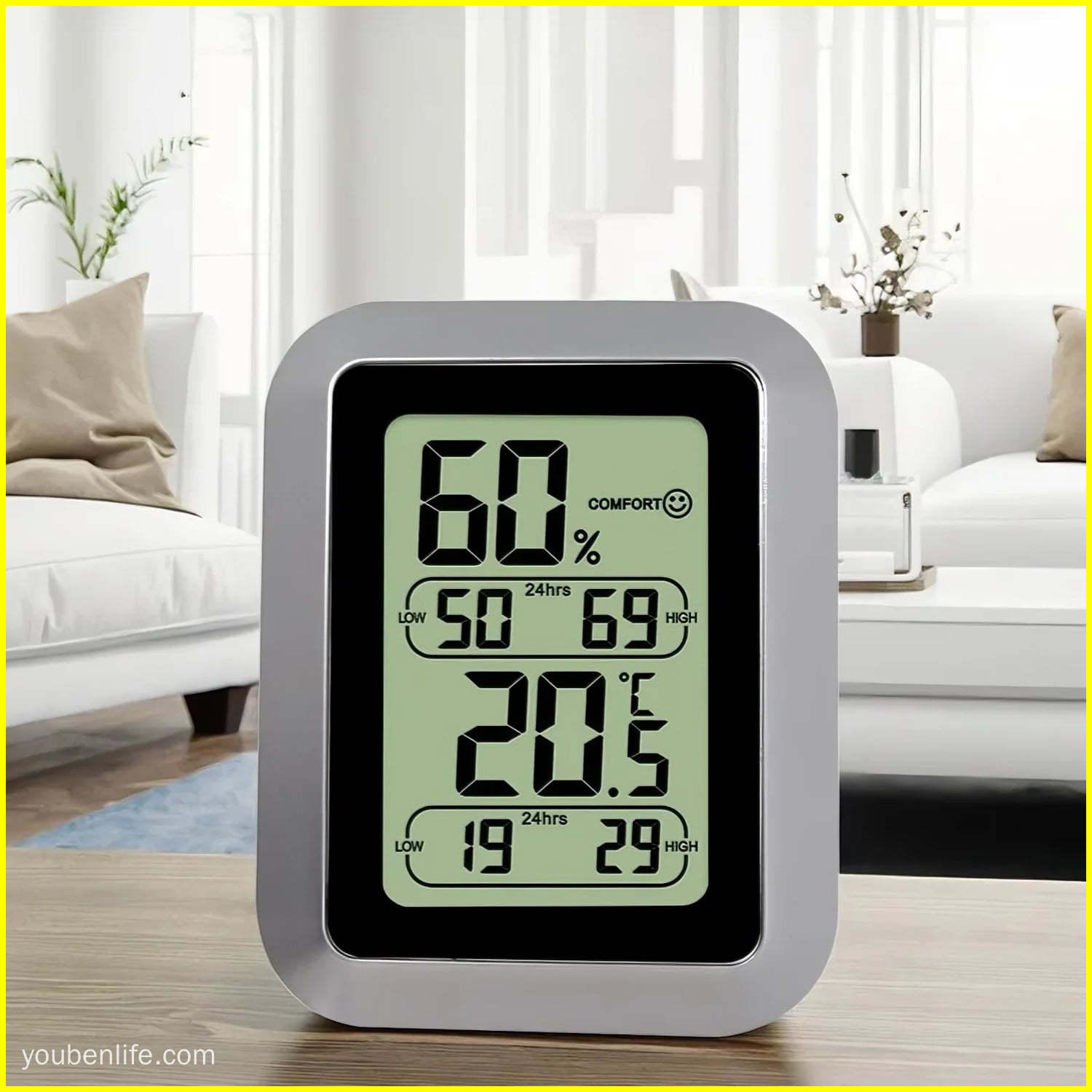 Youben Life's high accuracy registering thermometer hygro combines precise temperature and humidity measurement with easy-to-read digital display and memory for min/max values. Designed for everyday use in homes, greenhouses, labs, storage rooms and retail, this compact thermo-hygrometer helps you monitor indoor conditions and make decisions that protect health, inventory and sensitive equipment.