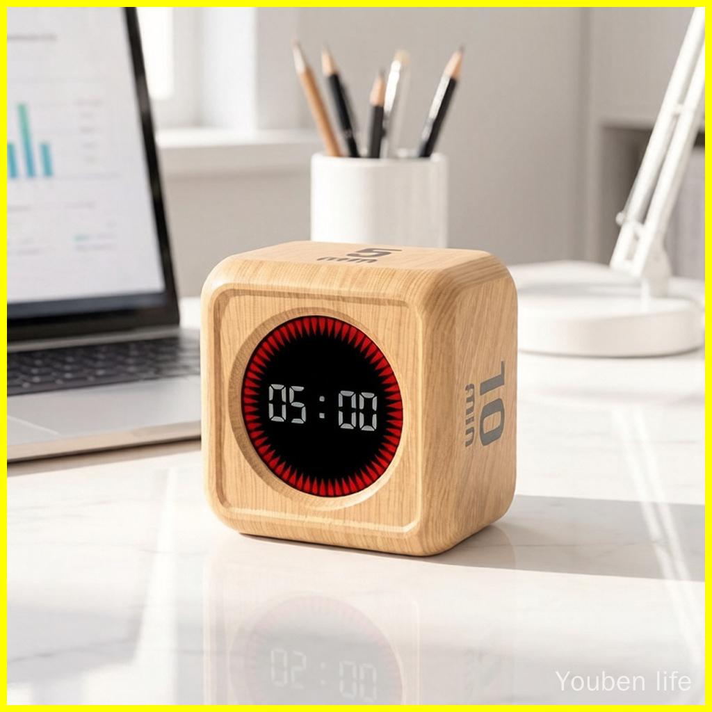 Crafted as an 8-sided cube with a sleek, novel mini-round profile, Cube redefines portability and style. Its eye-catching flip-gravity rotating visual display (no boring screens!) makes time visible at a glance, while a crisp digital clock shows seconds, minutes, and hours—ideal for recipes, Pomodoro sessions, or study intervals.