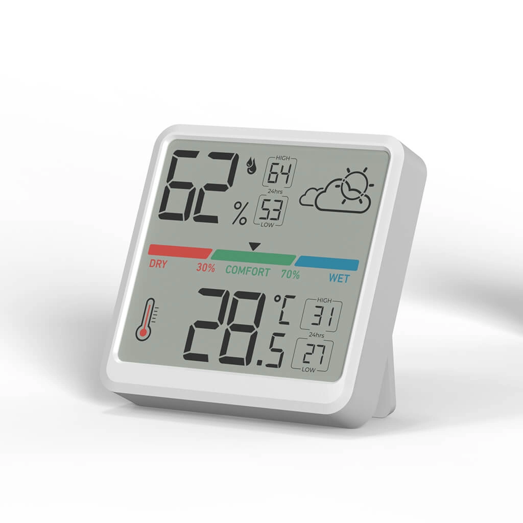 It combines 24-hour minimum/maximum temperature/humidity recording, dual-unit (°C/°F) display, and intuitive comfort indicators to help users monitor and optimize their indoor environment with ease.