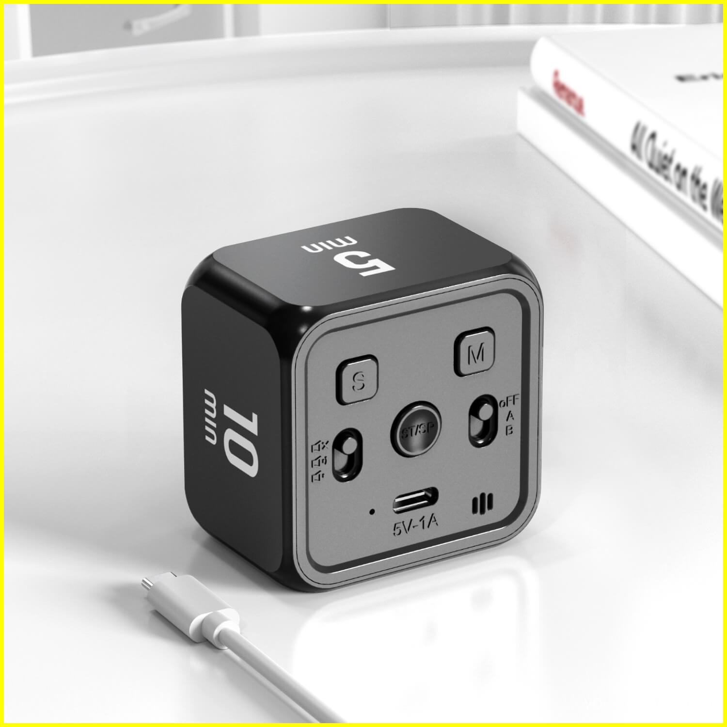 Crafted as an 8-sided cube with a sleek, novel mini-round profile, Cube redefines portability and style. Its eye-catching flip-gravity rotating visual display (no boring screens!) makes time visible at a glance, while a crisp digital clock shows seconds, minutes, and hours—ideal for recipes, Pomodoro sessions, or study intervals.