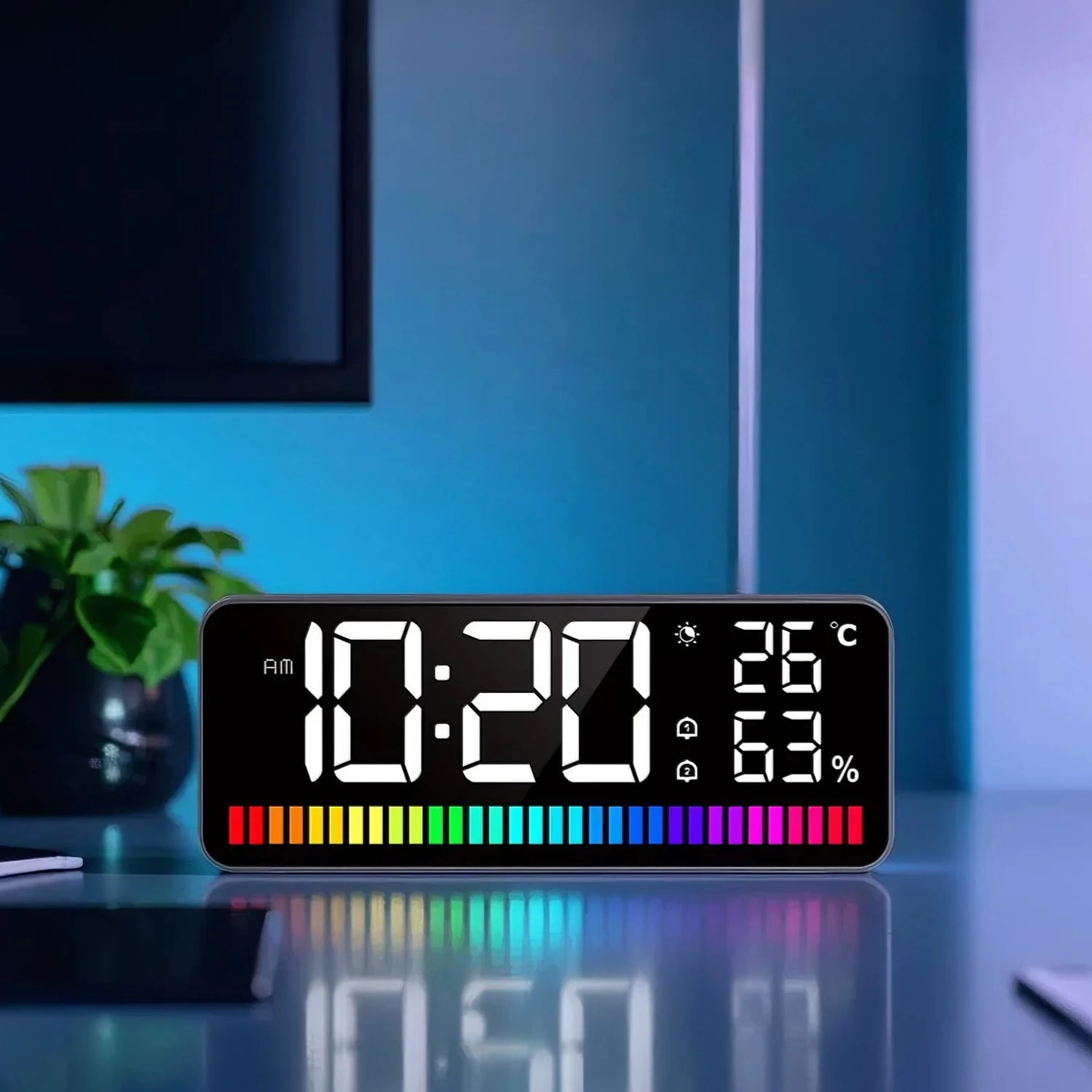 Custom Modern Popular Smart Room Electronic LED Colorful Light Progress Bar Digital Visual Time Alarm Clock with Temperature Display