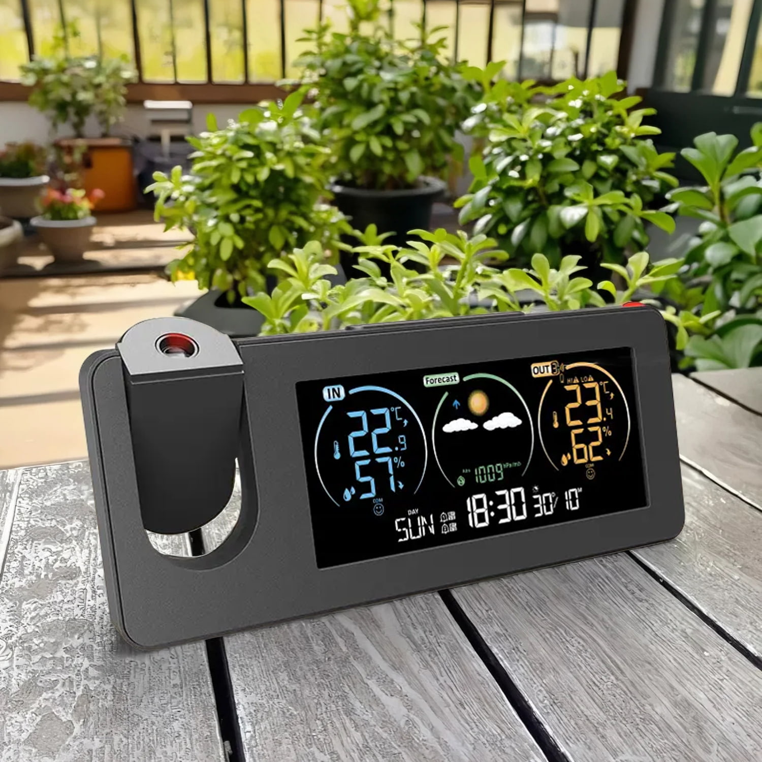 Designed for both home and office use, this all-in-one gadget simplifies daily life by combining essential functions—timekeeping, climate sensing, and projection—into a compact, user-friendly device.