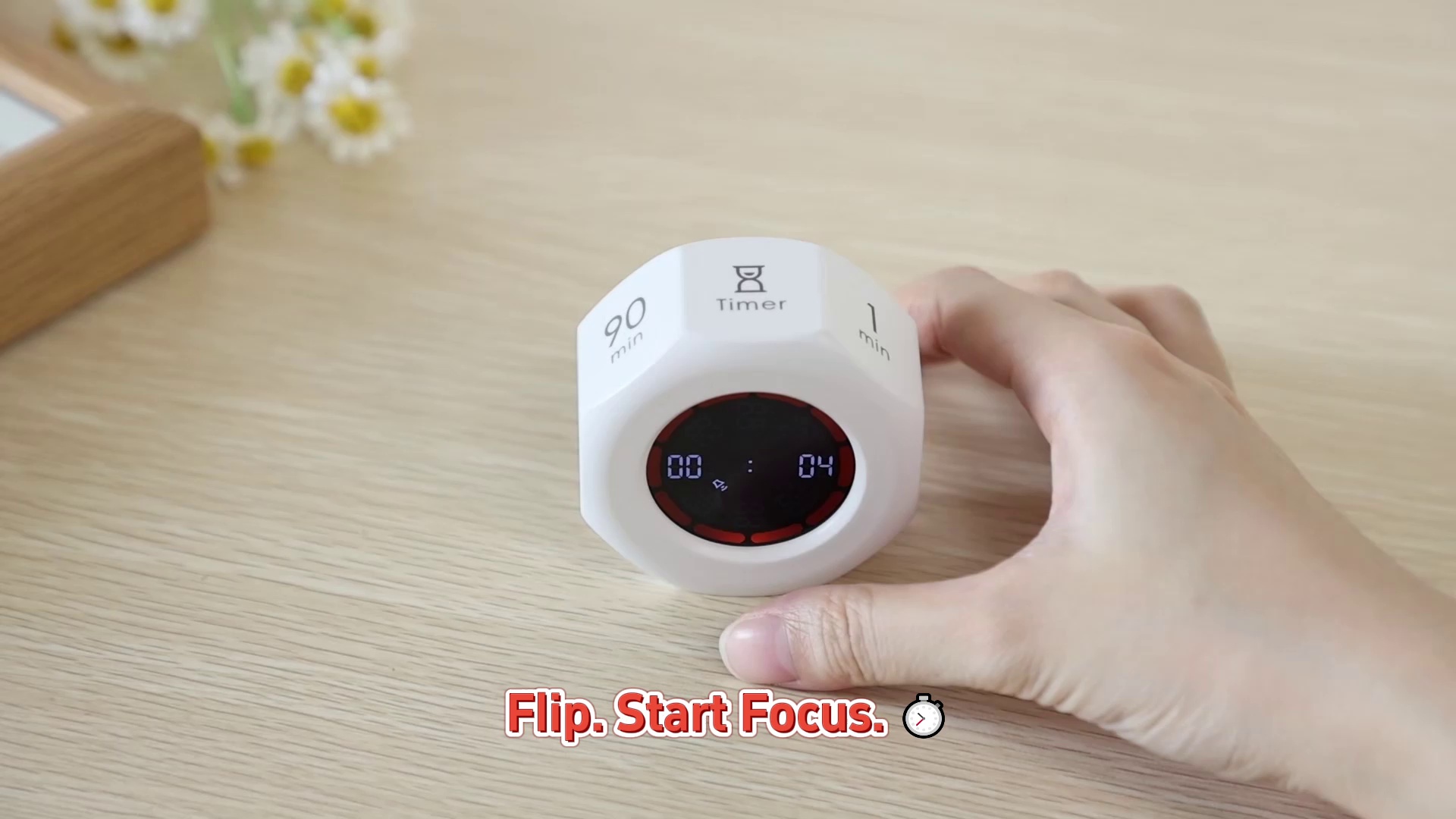 Crafted as an 8-sided cube with a sleek, novel mini-round profile, Cube redefines portability and style. Its eye-catching flip-gravity rotating visual display (no boring screens!) makes time visible at a glance, while a crisp digital clock shows seconds, minutes, and hours—ideal for recipes, Pomodoro sessions, or study intervals.