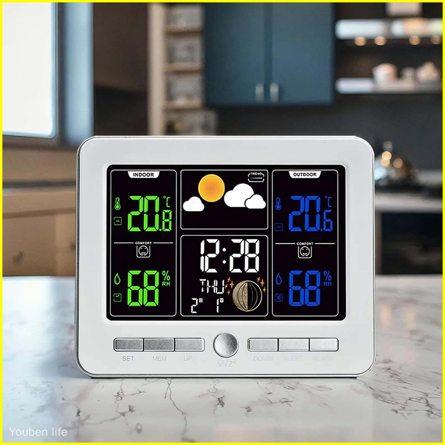 Custom Daylight Savings Desktop Wall Alarm Clock Indoor and Outdoor Sensor Calendar Weather Thermometer with Humidity